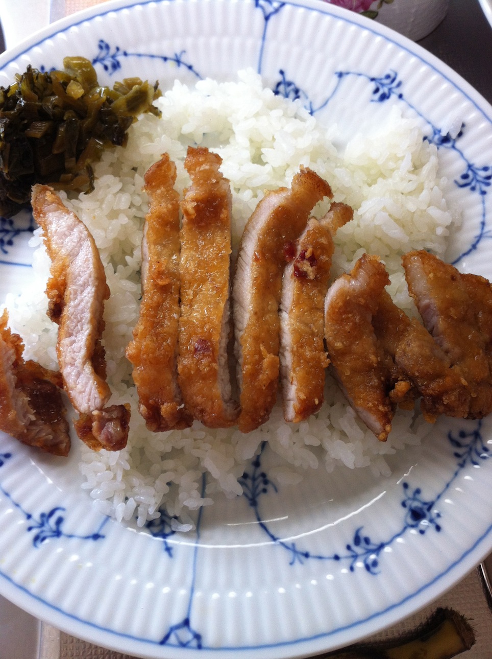 パーコーファンと読む。本来は骨付き豚肉の揚げ物。骨付きでなくてもできる。