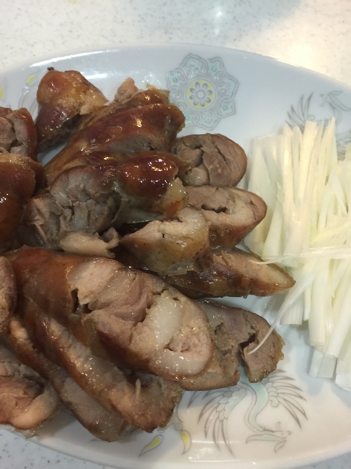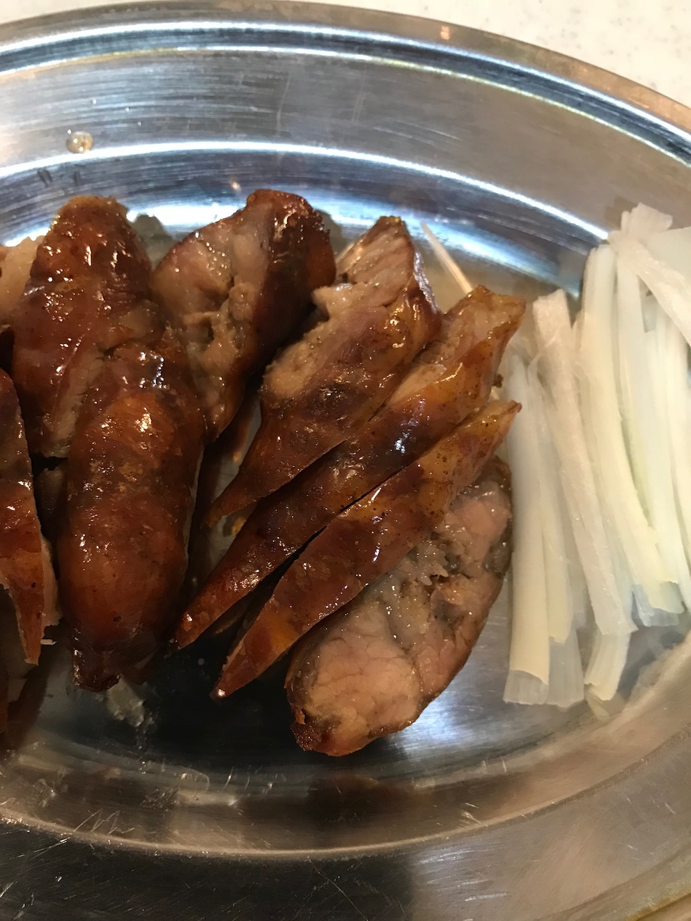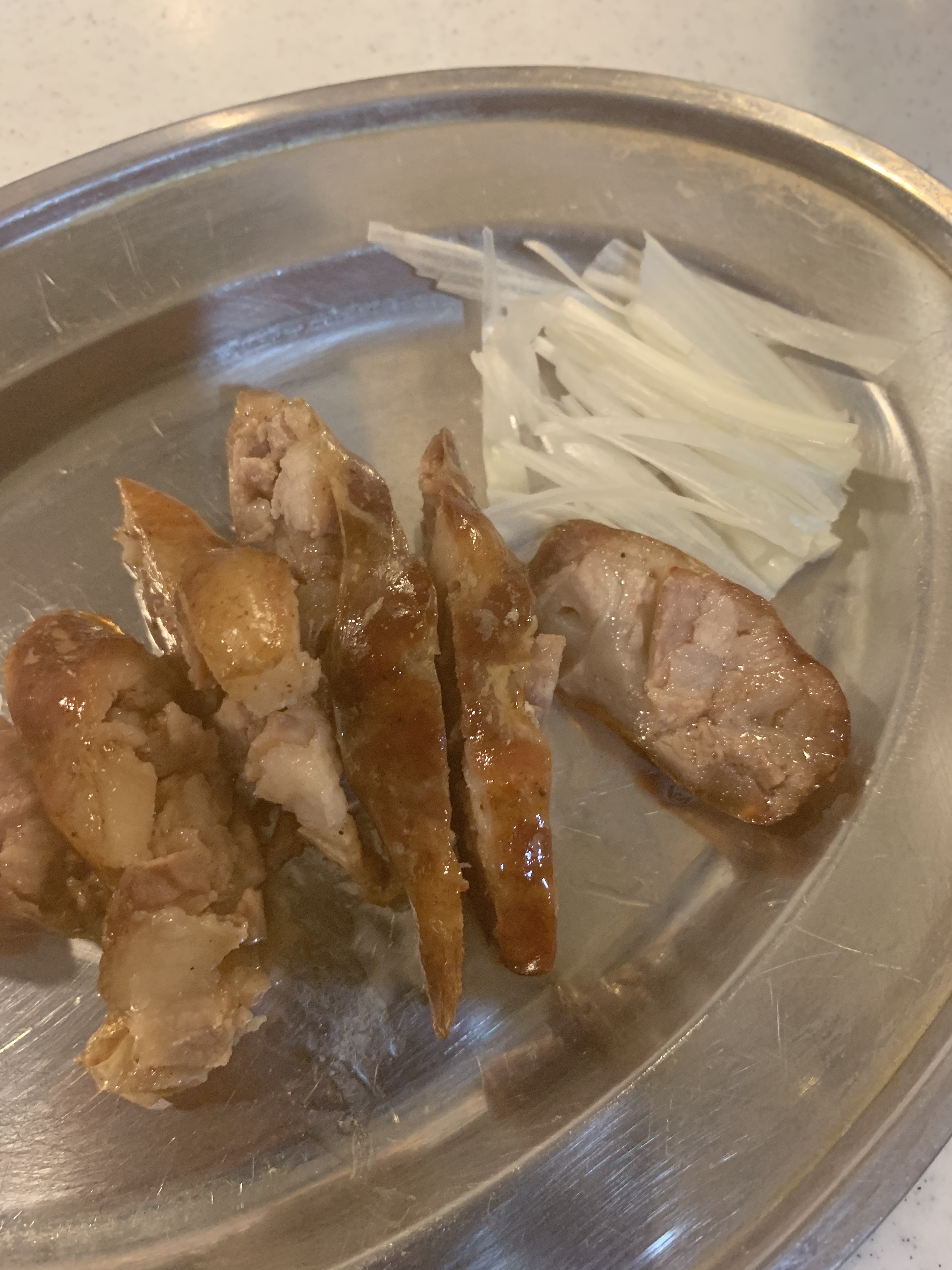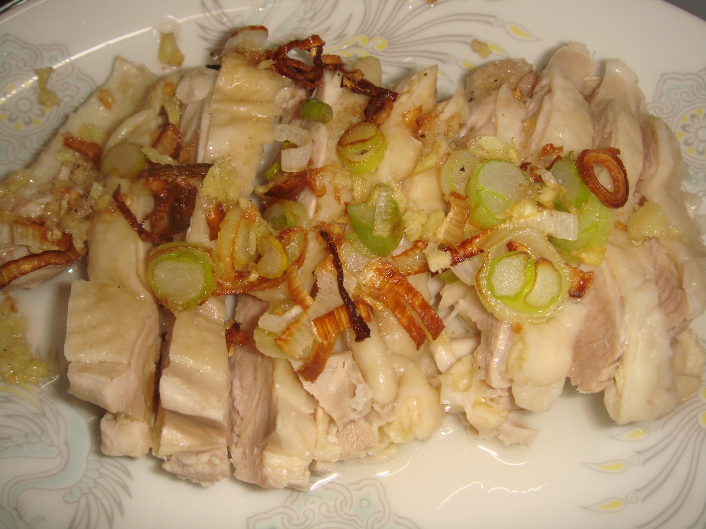白切鶏。ネギを少し焦がして風味をつけてみた。