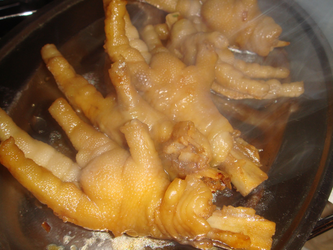 これは知る人ぞ知る鶏の足の炒め物。本場では煮付ける場合が多い。台湾では当たり前に食べられるこの料理は日本でグロテスクな理由から誰も見向きもしない。鶏の足(もみじ)を20−30分くらい煮込んで、その煮汁と、にんにく、醤油で炒め煮にしたもの。ビールのつまみなどに最高にあう。実際は甘めの味付けのヴァージョンも多くあるけど、僕は甘いのが苦手なので砂糖類は一切入れない。