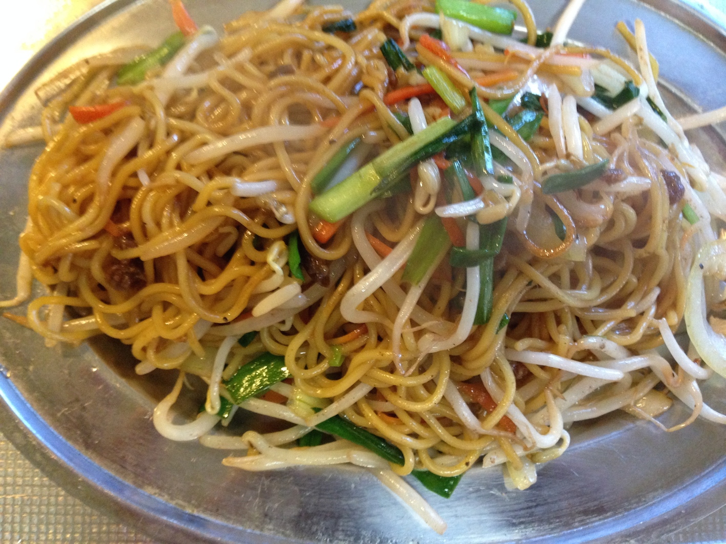こちらがそのペーストを使った焼きそば。まずこのターミーペーストを大さじ1フライパンに入れ、油を充分に溶かし、そぼろ肉をほぐす。次に野菜の、玉葱(少量)、人参を加え炒め、すぐ麺をいれ炒め、醤油、中国醤油、胡椒、のみで味付けをして、もやし、ニラを加え軽く炒めて出来上がり。