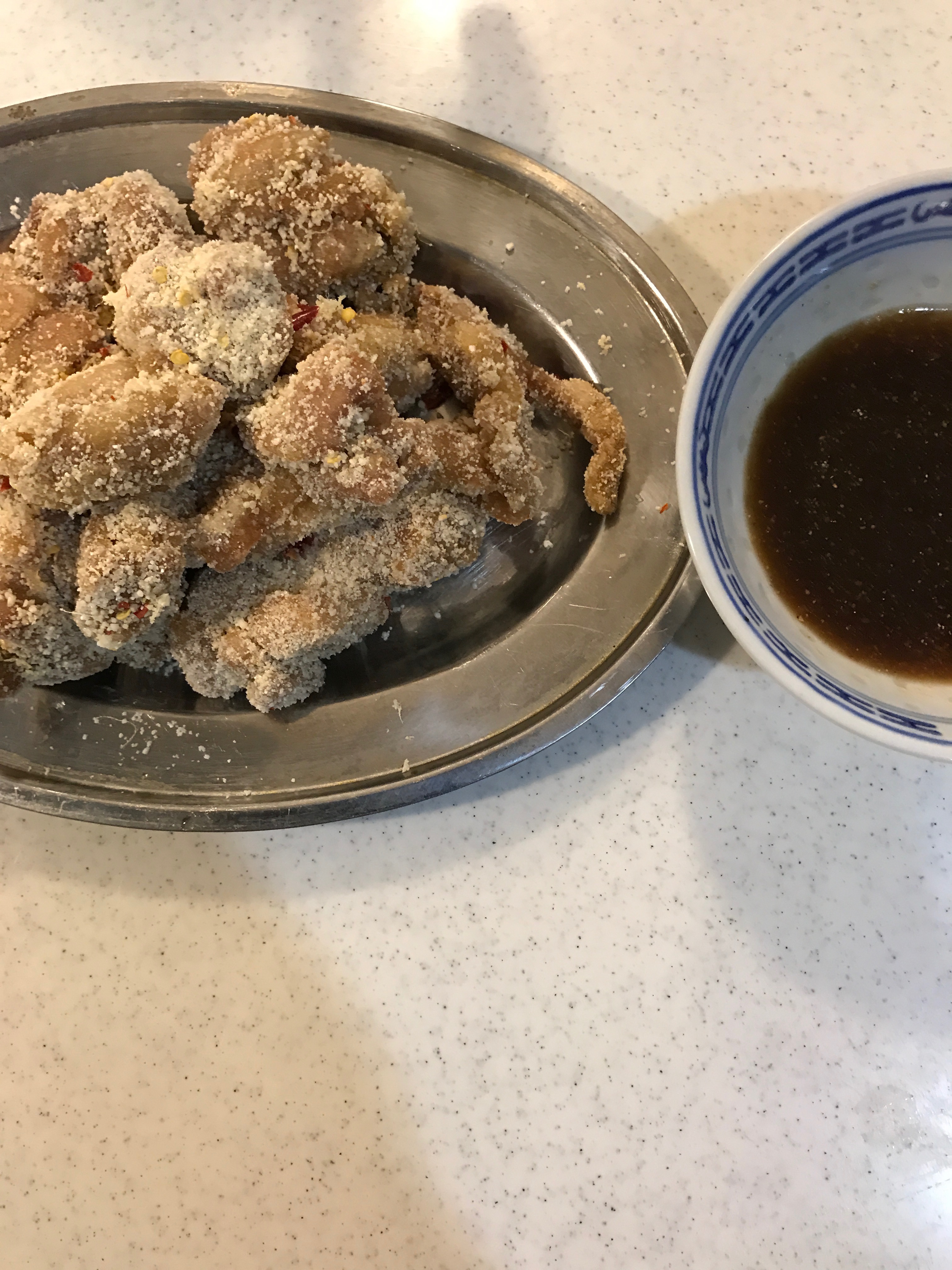 餅米:普通に炊いておくものと、フライパンで煎ってきつね色になったらスーパグラインダーで粉にするものの2種類を用意します。