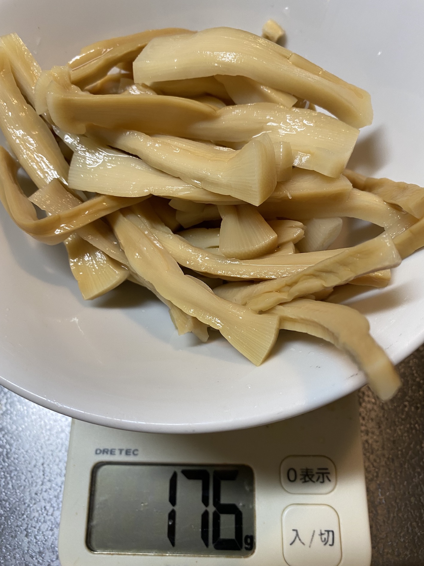 乾燥メンマは通常2ー3日かかるのが、一日で戻す術をyoutubeで伝授していて、その通りにやったら本当に一日で戻った。約10倍に膨れ上がります。なので、20グラムの乾燥メンマは200グラムになります。