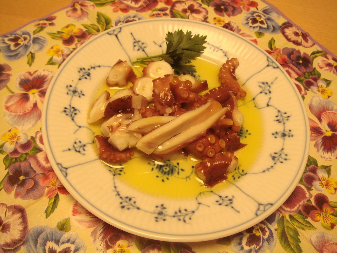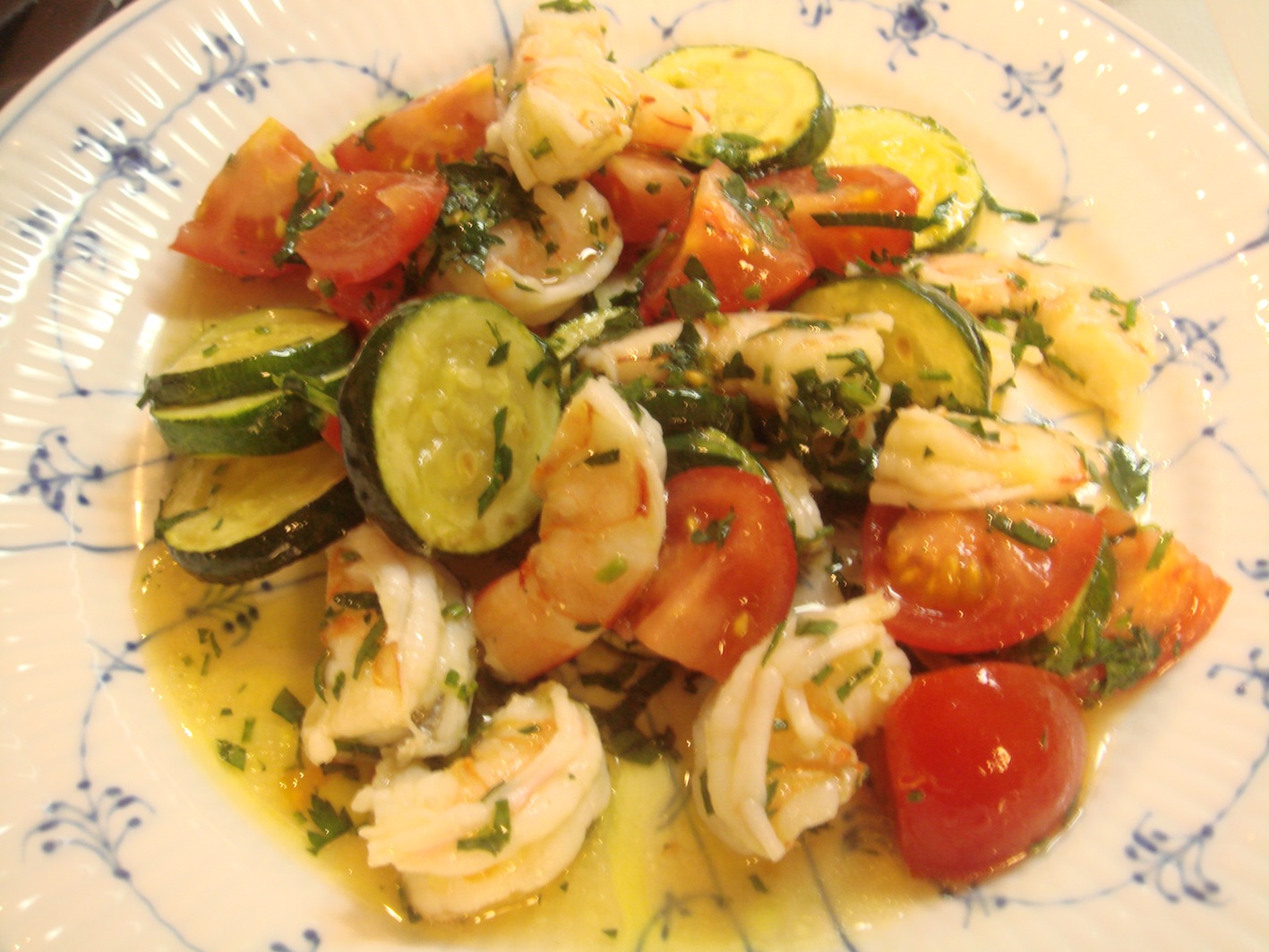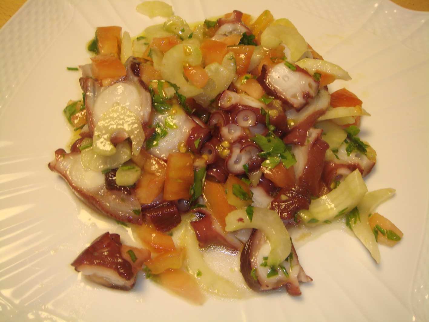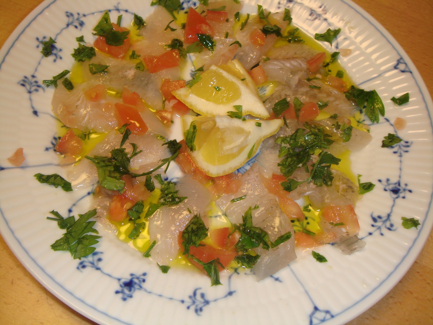 カルパッチョとは、オリーブオイルやレモン、塩などで、魚、野菜などを和えた単純な料理。結局のところ、オリーブオイルの種類が全てを決めるといっても過言でないほど、オリーブオイルの役目は大きい。数あるオリーブオイルの中で僕のお気に入りは次の2種類。特にこのマトライアっていうオイル、凄いです。新宿伊勢丹などで手に入れる事ができます。 そのオイルで作ったカルパッチョがこちら。ズッキーニ 海老 トマトのカルパッチョセロリ タコ トマトのカルパッチョヒラメのカルパッチョこれは僕のオリジナル、豚足のカルパッチョ。柔らかく煮込んだ豚足にクルトン、チーズなどを合わせています。これはただ単にゆでダコにオリーブオイルをかけただけのもの。実はこの料理、最もオリーブオイルの良さがわかる。是非お試しを!こちらは定番の牛肉のカルパッチョ。新鮮なもも肉の固まりを手に入れ、スライスしたもの。それにニンニクのみじん切り、パセリのみじん切り、オリーブオイル、レモン、塩で味付けをしたもの。大量のニンニクもパセリと食べれば匂いは残りません。この料理は美味しいです。オリーブオイルはかなりの量を使います。こちらは、カルパッチョとは言わないのかもしれないけど、タコとポテトを和えたもの。イタリアで出てくるこれらの前菜は本当に美味しい。こちらはレンズ豆。これはまず知っている人が少ない事に驚く。そして食べても不思議な顔をする人が多い。僕の定番料理です。以前はコンソメスープなどで煮て、アーリーレッドやベーコンを加えていたけど、今はただ水から煮込み、塩とオリーブオイルだけで味付けするものや、ラルドと一緒に煮込むことが殆どです。シンプルイズベストですね。写真のレンズ豆はパンチェッタを使っています。これも好みになりますが、殆どのカルパッチョは、僕はイタリアンパセリを散らします。