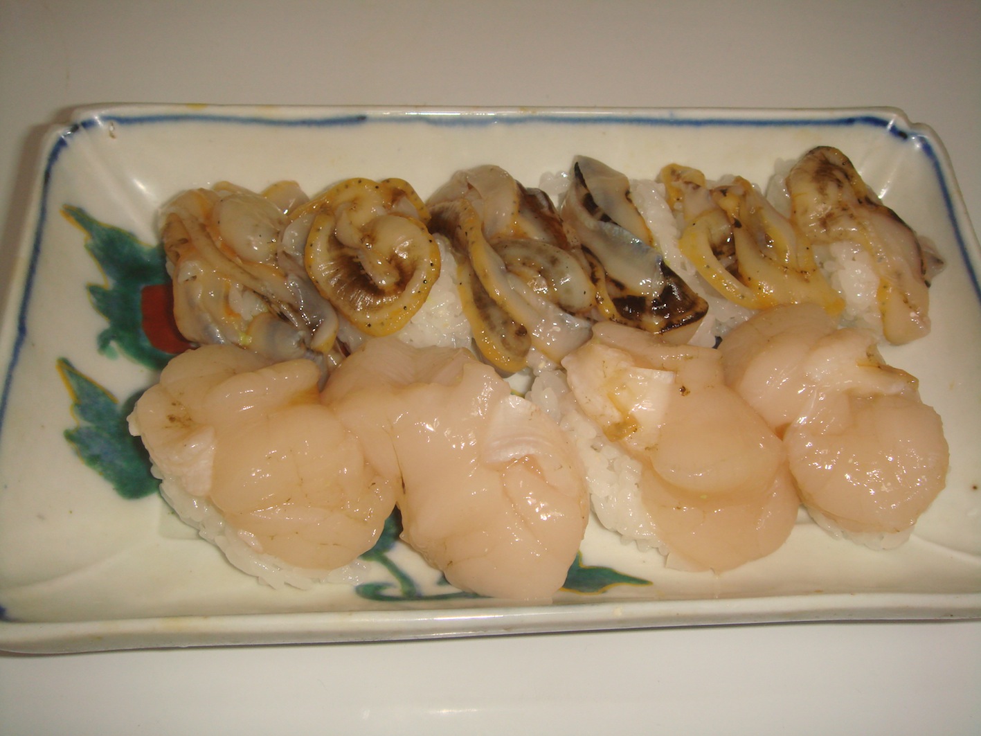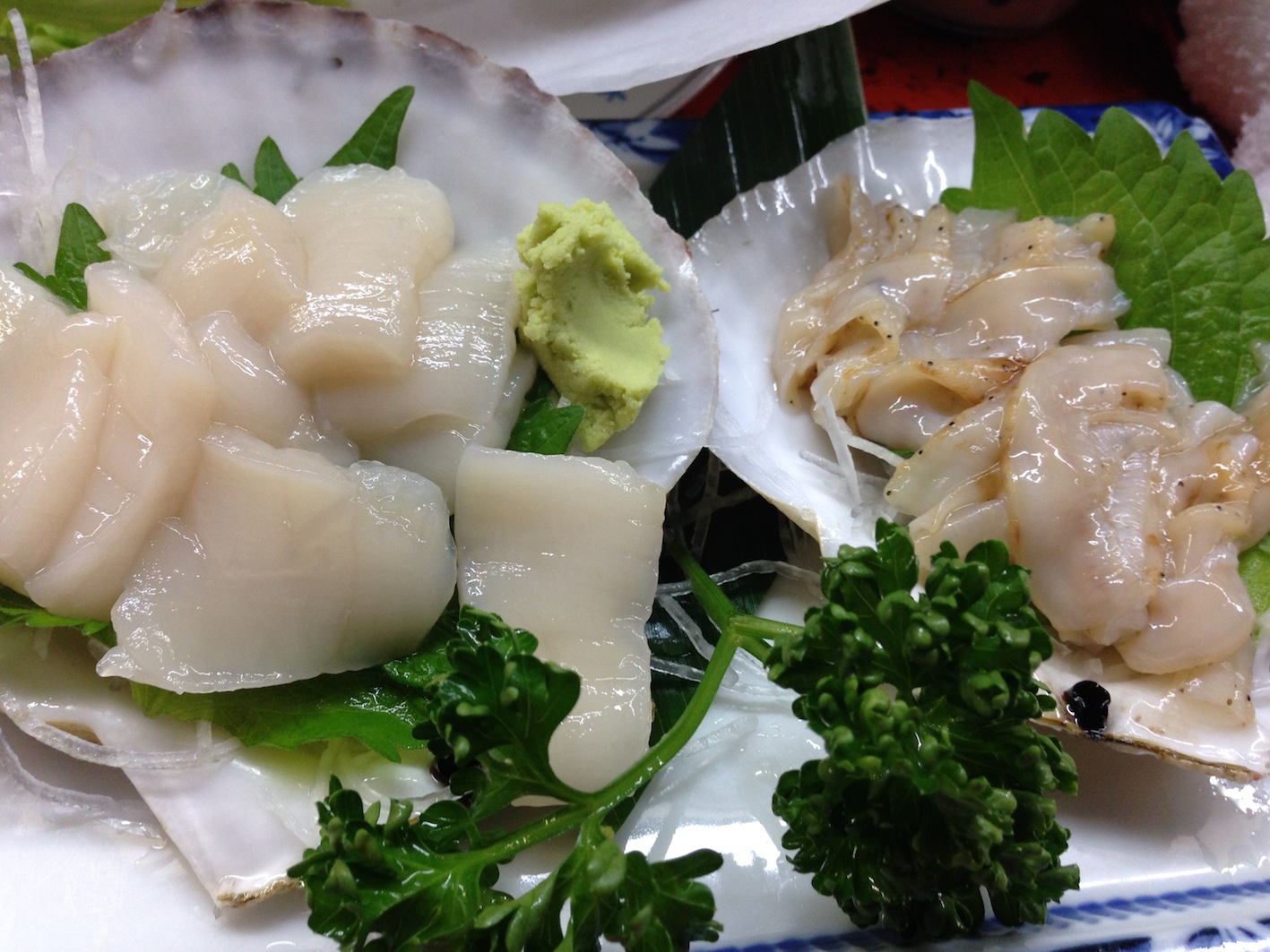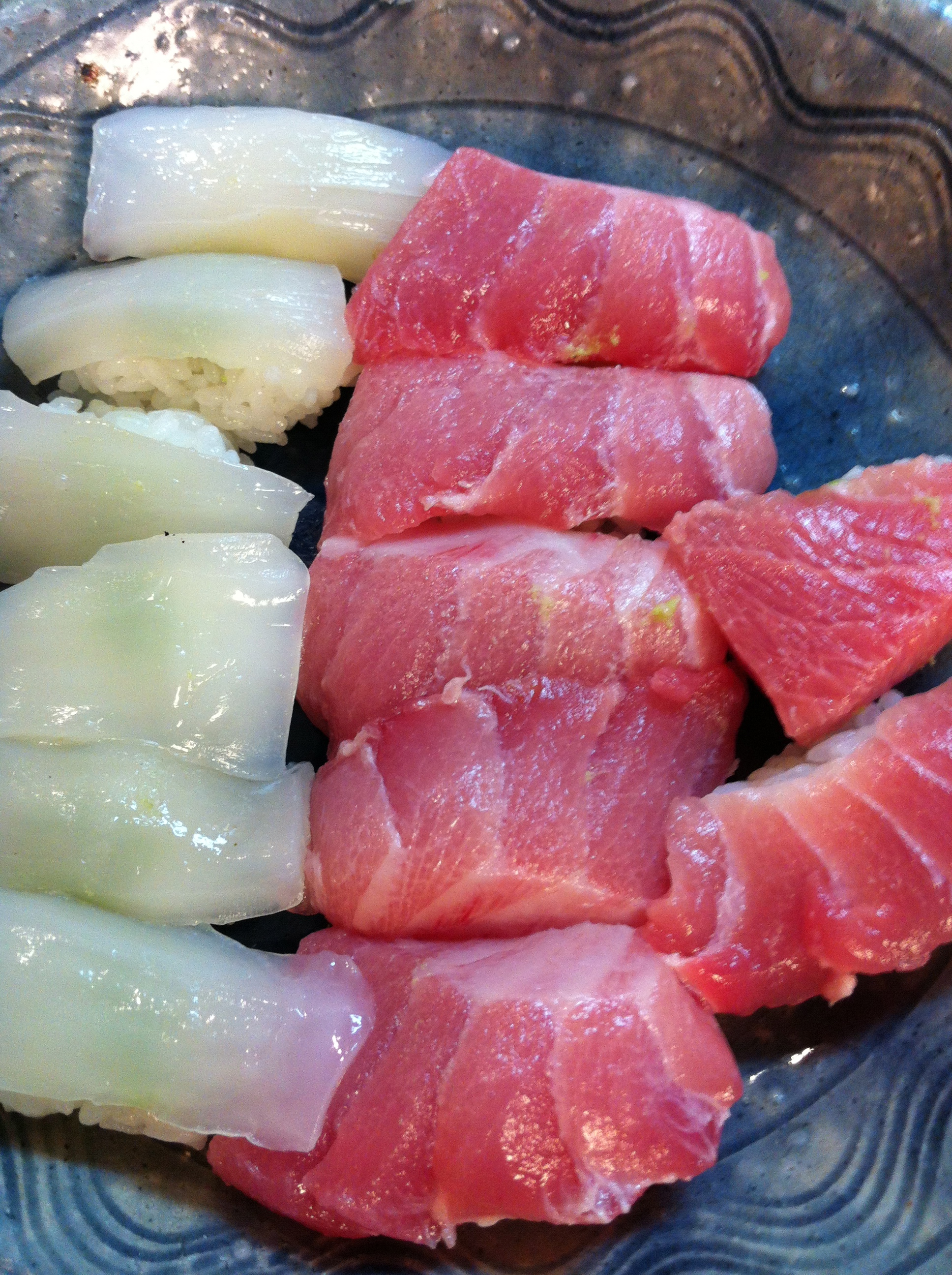 現在住んでいる宮城は、三陸の魚介類が楽しめるところ。クオリティーは高い。しかしながら、青森県下北半島のそれと比べてしまったらもうおしまい。この地の魚介類は地球上最高なのではないか?と思ってしまうほど美味しい。イカなど殆どただみたいな値段売られているのに(1ぱい150円くらい)、ここのイカは別格。ちなみに東京には生け簀にイカを泳がして、1ぱい3000円も取る店がある。イカのことを述べさせてもらえば、イカは、察するに、4時間以上の振動で味が落ちる。摂れてから1時間で店まで運ばれると仮定しよう。そこから仙台まで3時間で、ぎりぎり味が保てる。6時間になれば味は落ちる(経験上)。故に、生け簀に泳いでいるイカは、振動時間が長いということと、そもそも生け簀に泳いでいるもので美味いものは無い。さらに、イカというのは活き造りをしても美味くない。数時間経たないと甘みが引き出されないのだ。だから例えばたとえ函館の生け簀から生きたイカをさばき、出したところで、それは固いだけで旨味がない。3000円も払って、最悪のイカを最悪の状態で食べているのにも関わらず、これは例えばテレビの取材などでは「美味しい」という事になっている。何とも滑稽なはなし。新鮮=固い=美味しいではない。これは下北半島のイカ。振動時間は約5時間。それでも美味い。この色を見れば判る。東京の魚屋に並んでいるのは、、、、、あれは、、、、ただのイカの死骸です。火を通さなければとても食べられたものではない。そのイカと大間のマグロを使って握った寿司。う〜〜ん、これ以上の寿司は存在するか、、、。下北半島はホタテが有名。しかしこれも相当食べなければ善し悪しの判断が難しい。このホタテはつい先日送って頂いたもの。水々しい、味にキレがある、独特の旨味、甘み、が一体となる。ヒモは海水の塩分が豊富に含まれ、醤油など入らない。これはそのホタテを使った寿司。美味い!そして最後はウニ!下北を代表する魚介類はキリが無い、尻高、つぶ、あわび、そい、などなど。でもこれだけは外すわけにはいかない。下北のウニ丼を食べれば、生まれてきた意味が分かる。