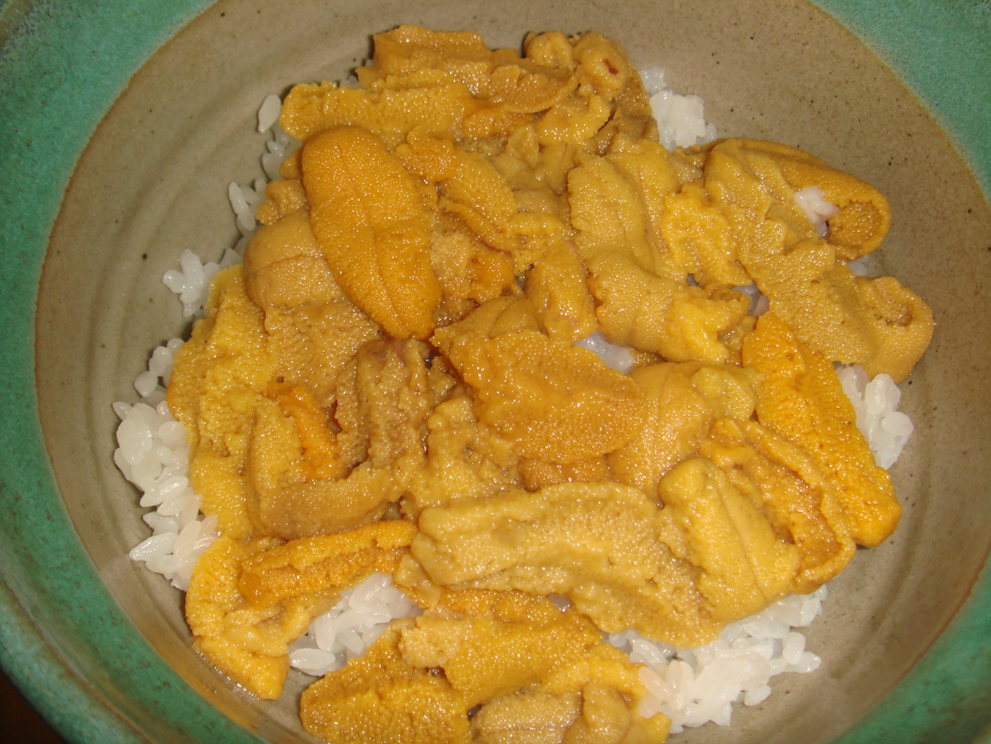 しばらく他県で仕事だった。今回はハズレばかりで瀕死の状態だった><。最近、県によっては他県にいるのが辛い事がある。青森はそう言う意味でかなりレベルの高い県だが、ワイン系が全く弱く、これはまた辛い。昨日の夜に帰って来て生き返ったところ。佐井村からウニを購入した。最高のウニ。ご覧のように海水に浸かっている。これでウニ丼を作る。こちらが佐井のウニで作ったウニ丼。醤油、海苔、わさび、一切必要なし。そのままで充分。最高!