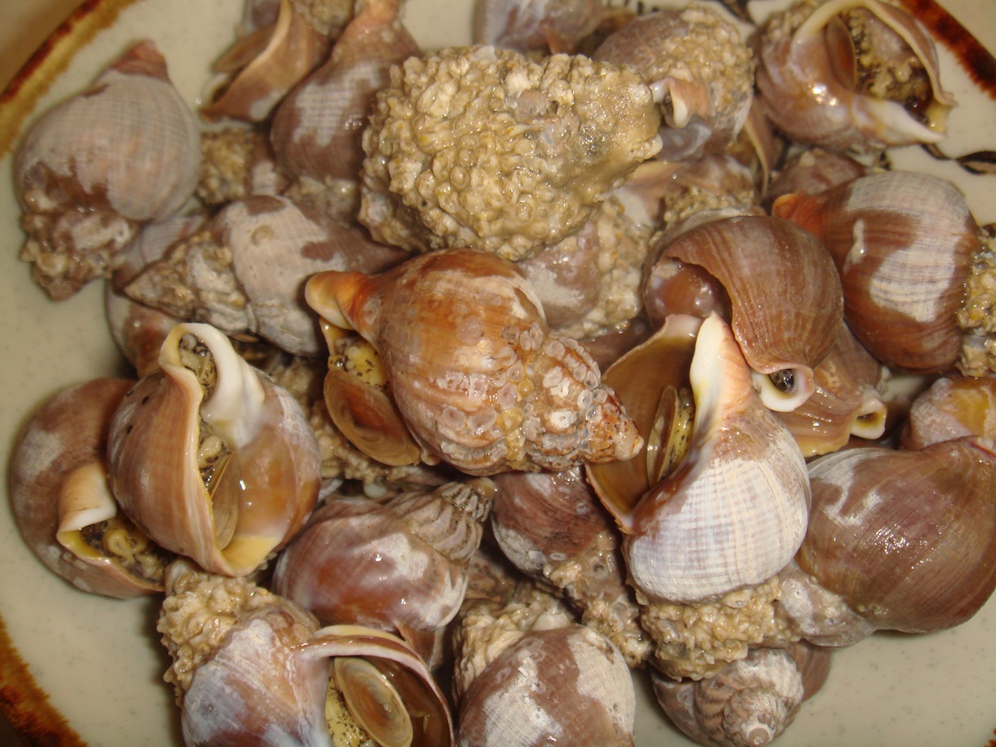 所謂尻高の事。青森県むつ市ではこれを、磯ツブ と呼ぶ。値段にして1200円分位を買って来た。半分の量を茹でたところ。必ず水から茹でる事。これがつまみに最高。楊枝などで身を刺して、貝からうまいこと回転させながら中身を取り出す。磯の香が何とも言えない。海水の塩っぱさ、貝の甘み、独特の磯の香が一体となる。大好きな食べ物の1つ。残り半分は、ダシをとって塩ラーメンにするか、ボンゴレのようにパスタにするか悩み中。