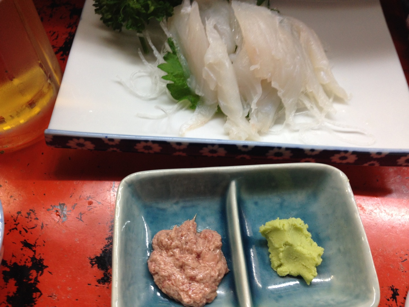 青森県むつ市の海鮮居酒屋。レベルが高いのでブログに載せます。 お通しのイカの塩から。お通しでその店のレベルがわかる。お通しが美味しければ料理も必ず美味しい。まずければもう終わり。 かわはぎの刺身。左のは肝です。これを醤油に溶かしてつけダレにします。淡白ですが美味です。 ほたての刺身。これはもう言うまでもない。この店は基本の力がとにかく強い。即ち、料理に対する要求が強い=レベルが高い。居酒屋海魚むつ市田名部町3-3 田名部横丁0175-23-5162